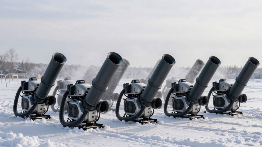 How important is the nozzle’s shape when you’re clearing snow? The right nozzle determines how far and how precisely you can blast snow off driveways, sidewalks, and roofs. Look for a detachable, adjustable nozzle that lets you switch between a narrow, high‑velocity stream for deep drifts and a wide‑angle fan for light, fluffy snow. A bell‑shaped nozzle concentrates airflow, breaking up packed snow, while a flat‑plate design spreads the blast, reducing drift onto nearby plants. Consider a quick‑connect system so you can swap nozzles without tools, and guarantee the material resists clogging from ice crystals. Adjustable airflow settings let you match nozzle size to snow density, giving you control and efficiency in every condition.