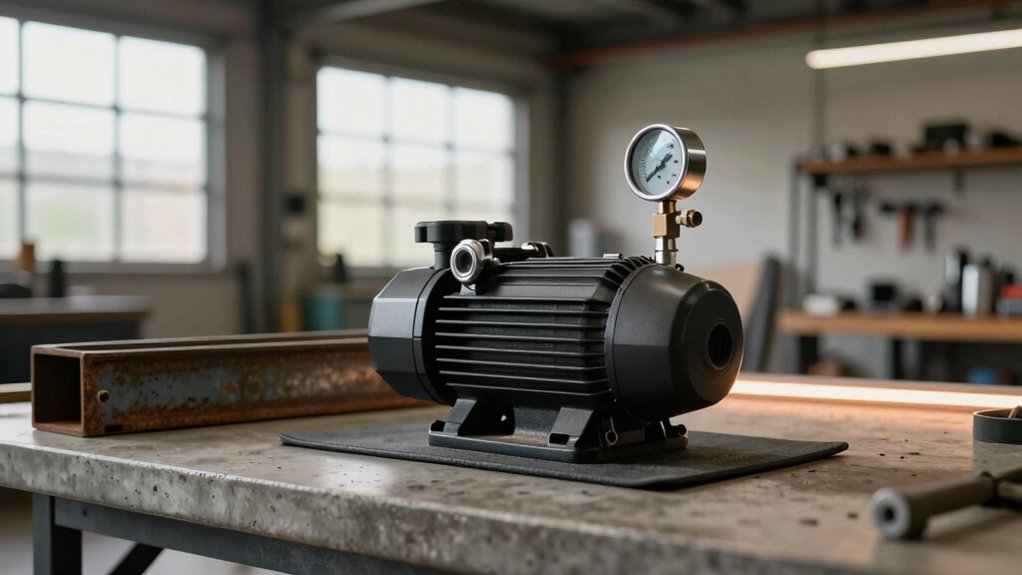 Two‑inch clearance is a minimum you should keep around the cylinder, so the pump’s overall dimensions must stay well within that space. Measure the workspace length and width, then pick a unit that fits with at least a 2‑inch margin. If the area is shallower than 12 inches, a handheld or bench‑mounted pump with a compact form factor is essential. Keep the pump’s weight under 15 lb for one‑person transport and positioning. Choose hoses no longer than 8 ft to reduce pressure loss and avoid excessive routing. Opt for models that feature quick‑connect couplings and a low‑profile base, ensuring mounting requirements don’t block nearby equipment. These size and portability checks let you maintain safety, efficiency, and ease of use on tight job sites.